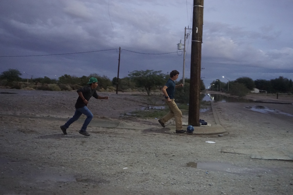 We stuck out like a sore thumb in this small border town in our blue raincoats. We ate at a local restaurant and then drove to meet Maria, Maisie, and Chuy, who are dear friends of Dev and some of the most generous people we had met. They welcomed us with open arms into their home and taught us how to make the best tortillas. We had to stay in their home, on their kitchen floor because the road was too muddy to get to Dev’s house a little ways away, but that was the best thing that could have happened. That night we played an intense pickup game of soccer with local kids, using glass Coke bottles as a goal. Every time a car would drive by we would all have to run quickly off the road, sometimes running over our goal making the bottle explode. The rest of the evening was filled with laughter and warmth, playing games, and sharing stories over a warm meal. Many memories were made.