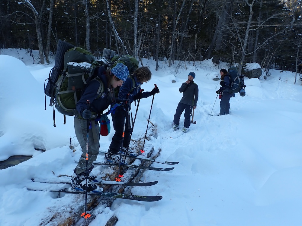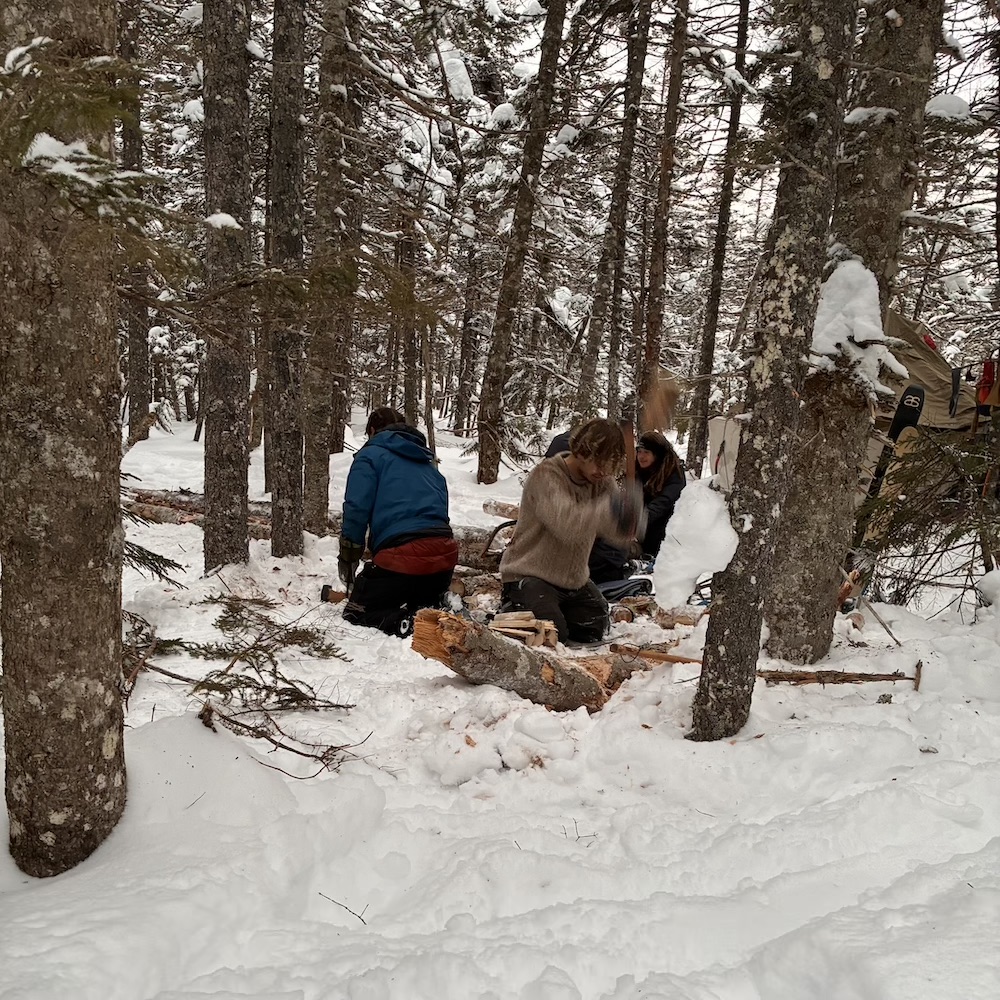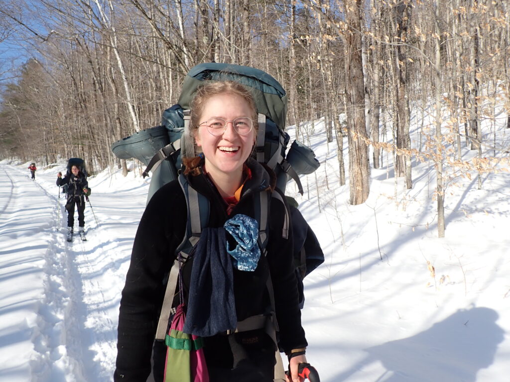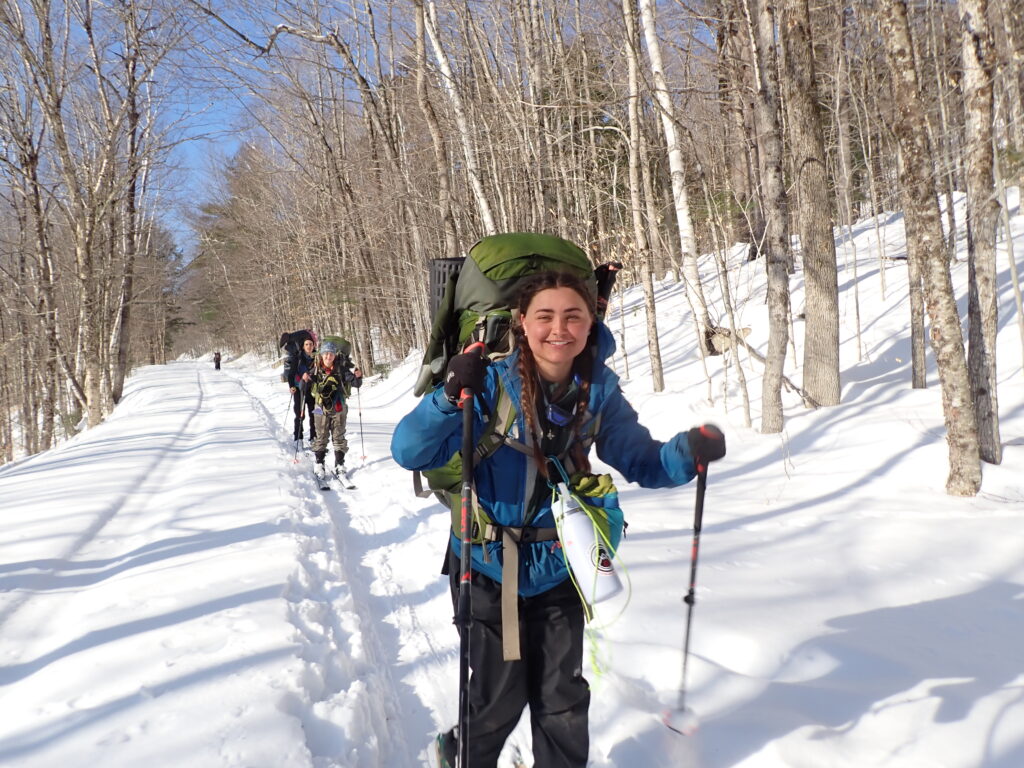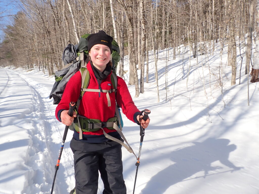We spent the day skiing without packs! It was awesome to be able to rush down slopes and enjoy some of the hard won and little enjoyed ability we’ve been practicing every day for weeks. Chris told us the story of New England, the history of the colonists arrival to America. The rest of the day was spent doing our familiar routines- bathing, chopping wood, and just taking a moment to breathe.