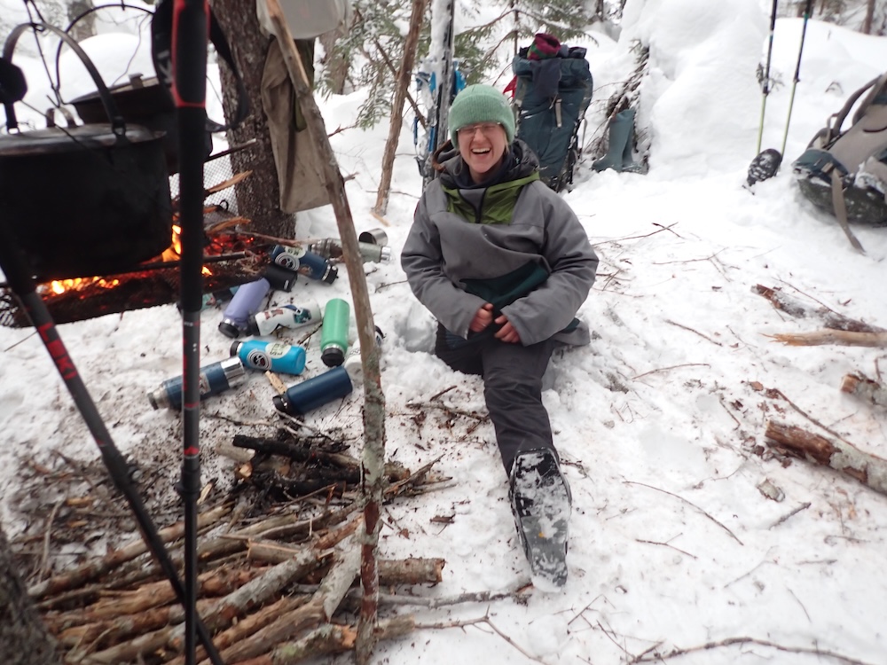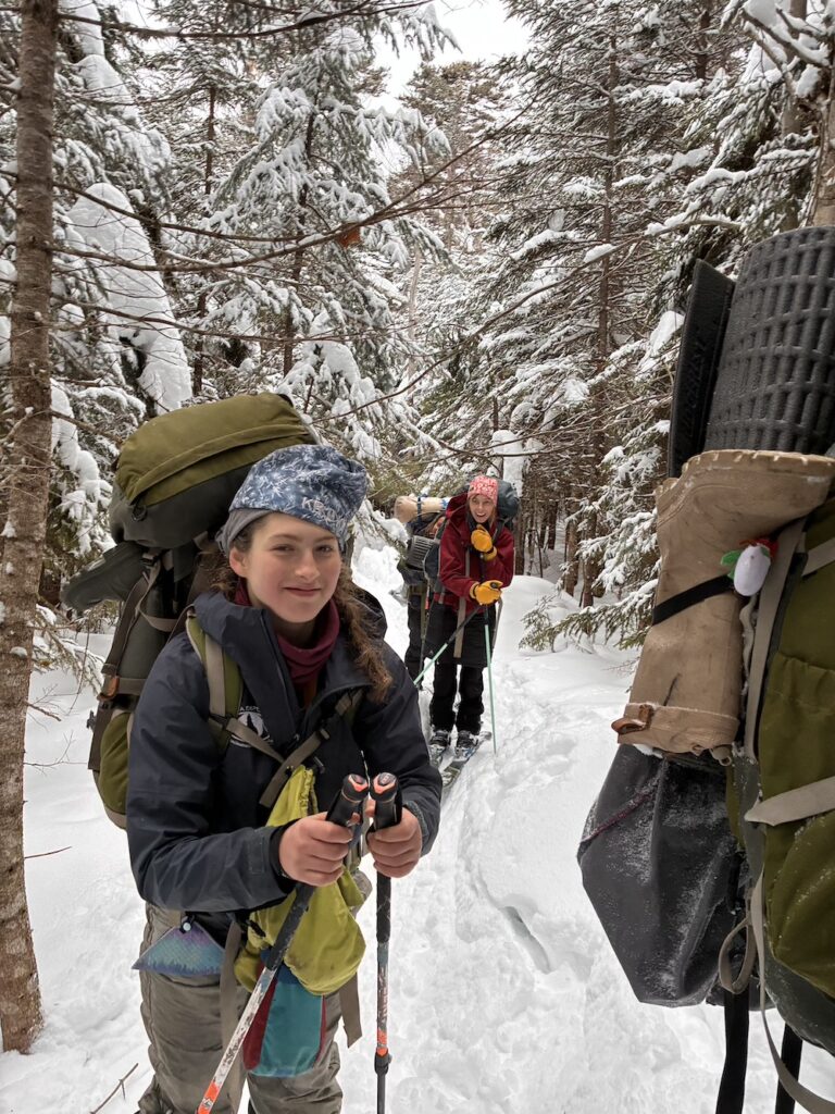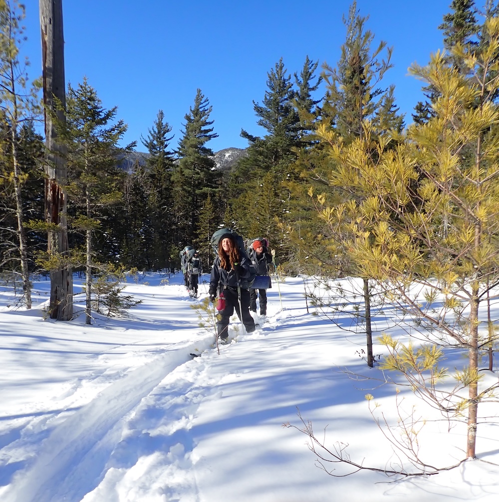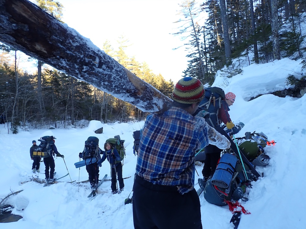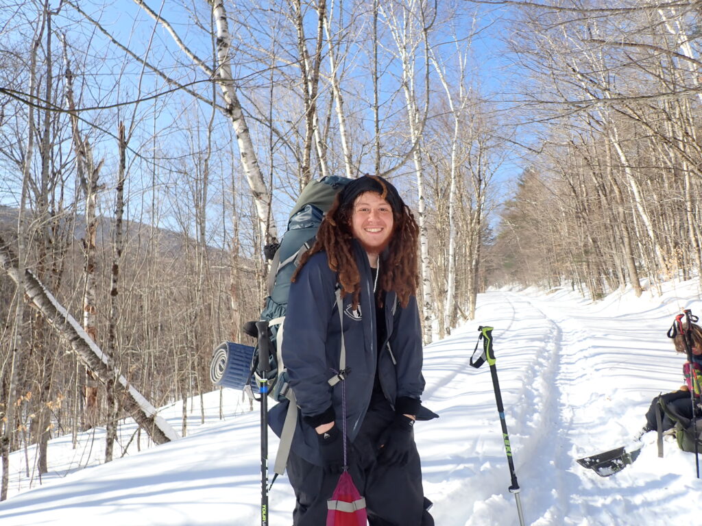 We spent the day skiing without packs! It was awesome to be able to rush down slopes and enjoy some of the hard won and little enjoyed ability we’ve been practicing every day for weeks. Chris told us the story of New England, the history of the colonists arrival to America. The rest of the day was spent doing our familiar routines- bathing, chopping wood, and just taking a moment to breathe.