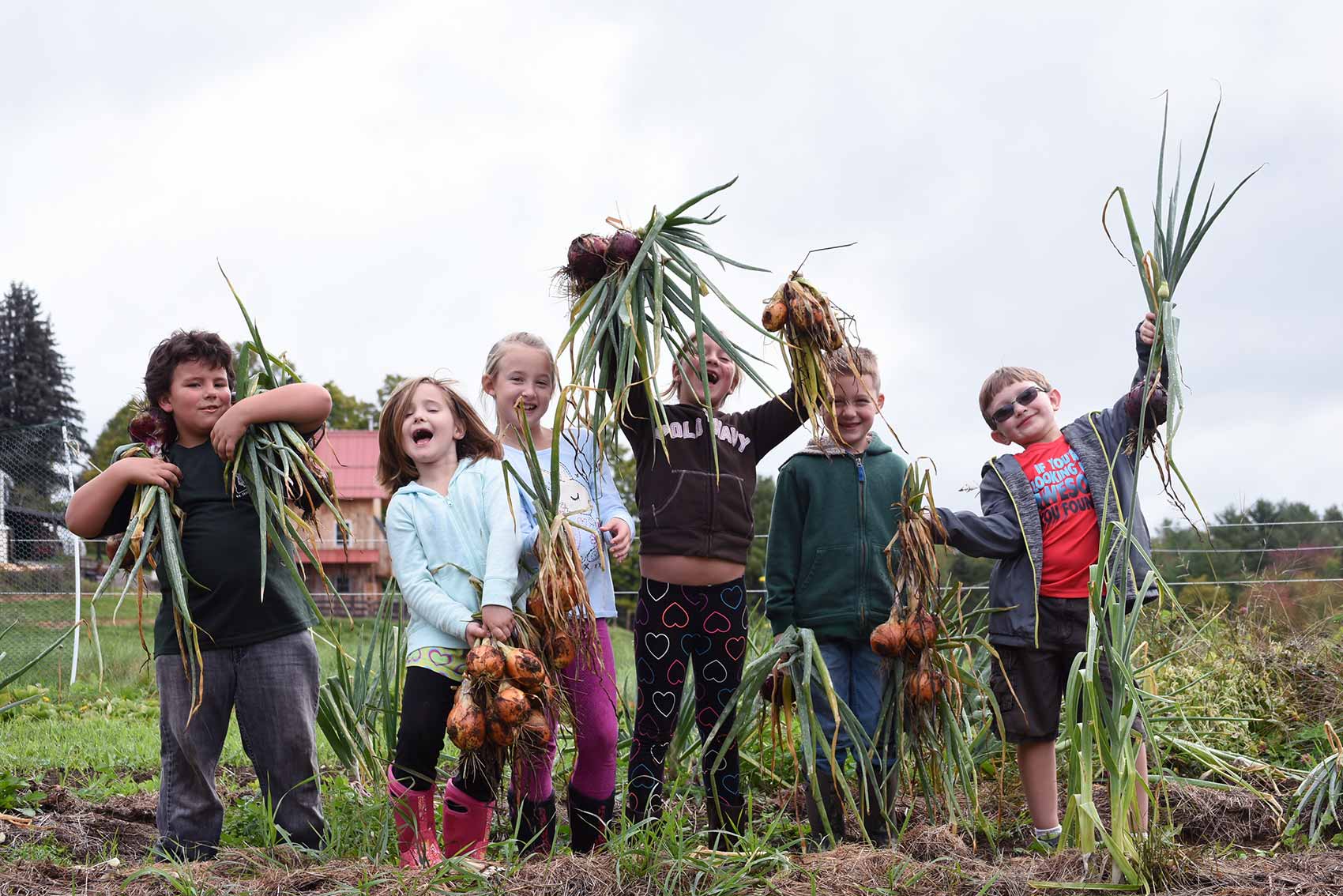 Kroka Village is home to a working farm where students are integrated into the daily rhythm of animal care, garden and grounds work, and community life. Our flock of 130 chickens provides us with daily eggs, and our two dairy cows provide us with nutritious milk. Our workhorse Brita hauls firewood and children alike in her wagon and loves for her thick coat to be brushed. The gardens and greenhouses are filled with produce growing for our programs throughout the year. The Kroka farm is integrated into life in the village, and our daily chores with students and staff allow us to share and contribute to the amazing growth that happens each day.