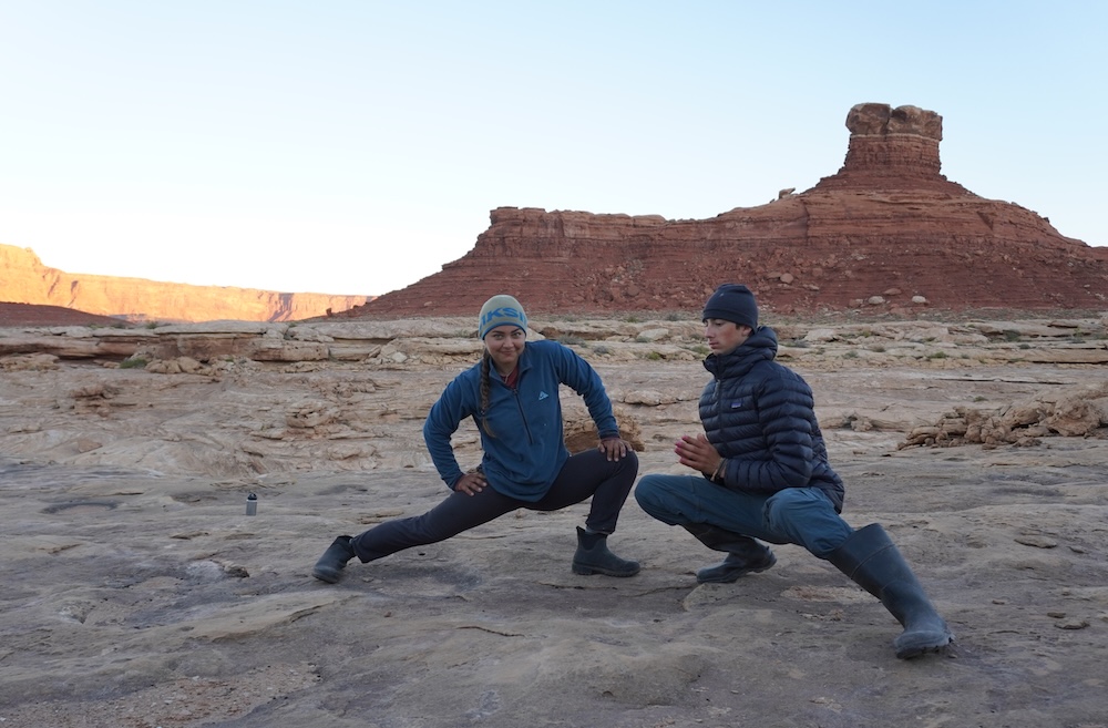 Sunrise stretching with Zahava and Dylan
