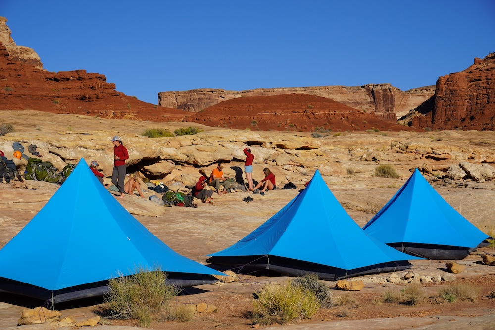 As we attempted to continue north the next day, we encountered Scar Tissue Canyon, an unexpectedly deep slot that had been impossible to identify by studying the map in advance. If we wanted to continue, we had to find a way to climb down to the bottom, and then up the other side. We sent scouting parties west to the river and east as far as the sheer walls that towered above us. We eventually found a way to scurry down, travel up the slot a bit, and then scramble out on the north side with Dave and Caleb spotting. That night we lay safe and warm in our sleeping bags as rain lashed our tents and lightning struck the mesa tops above us. In the one clear patch of sky we could see the Big Dipper and North Star, beckoning us on.