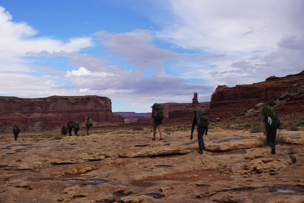 After another difficult day of travel along the river bottom the group had to make a potentially high consequence decision. Our planned route was to ascend Happy Canyon to arrive at our resupply, but we weren’t 100% sure that this was even possible. If our path was blocked by sheer cliffs, then we would face the prospect of a multi-day retreat with little to no food left. We sat down to come to a consensus. Initially all of the students except one were in favor of attempting to go East up Happy Canyon, but after a long discussion, the group was pretty evenly divided. We eventually decided to reroute to the West, up Poison Spring Canyon, which has an extremely rough dirt “road” running through it. The new plan allowed for a layover day, during which we make a beautiful 18 mile day hike to see the Happy Canyon Narrows, which were breath taking.