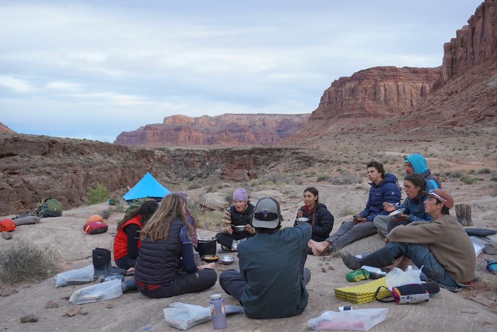 With almost no permanent inhabitants, the area inbetween Hanksville and Moab is one of the darkest places in the Lower 48. Arriving at Granary Springs at 8:00PM, the only thing visible was a long abandoned shack with the words “Motel 6” spray-painted across its corrugated tin facade. Those of us hoping for a hot tub, or at least of hot shower, were disappointed. In fact, as we exited the van we realized quickly that while we drove the temperature outside had dropped to near freezing. We hustled to pull headlamps, puffy jackets, and puffy pants from our packs. After a quick dinner and camp set up, everyone was happy to crawl into their sleeping bags.