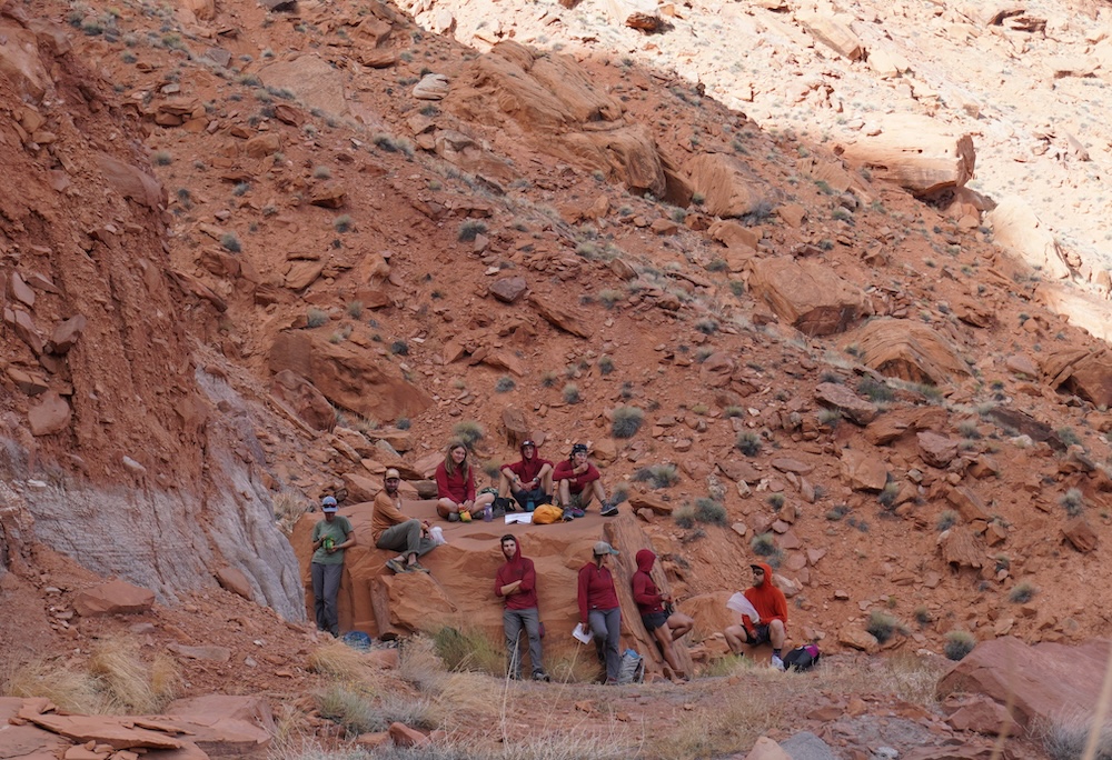 Departing the relative comfort of the Motel 6 and its reliable spring, we had our first day of independent student travel, backpacking through the desert. Everything went smoothly and we met up with Zoe a mile from our camp to get another week’s worth of food and the next set of maps. We camped for the next four nights at Robbers’ Roost Springs, where Butch Cassidy and the Sundance Kid successfully hid out after numerous bank and train robberies. Luckily, we didn’t stumble on any of the booby traps they were rumored to have placed to deter would-be captors.
