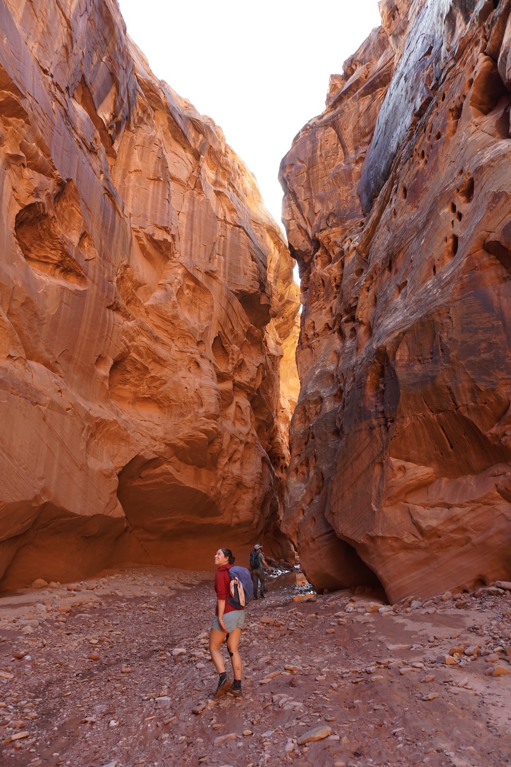 Driving into Glen Canyon National Recreation Area, we were in awe of the Colorado River, which appeared to be transporting even more sediment than our old friend the Green. As Norah put it, “Even more grit than the grits we sometimes eat for breakfast!” After unloading our backpacks from the top of the van, we set off up the Dirty Devil river, from its confluence with the Colorado.