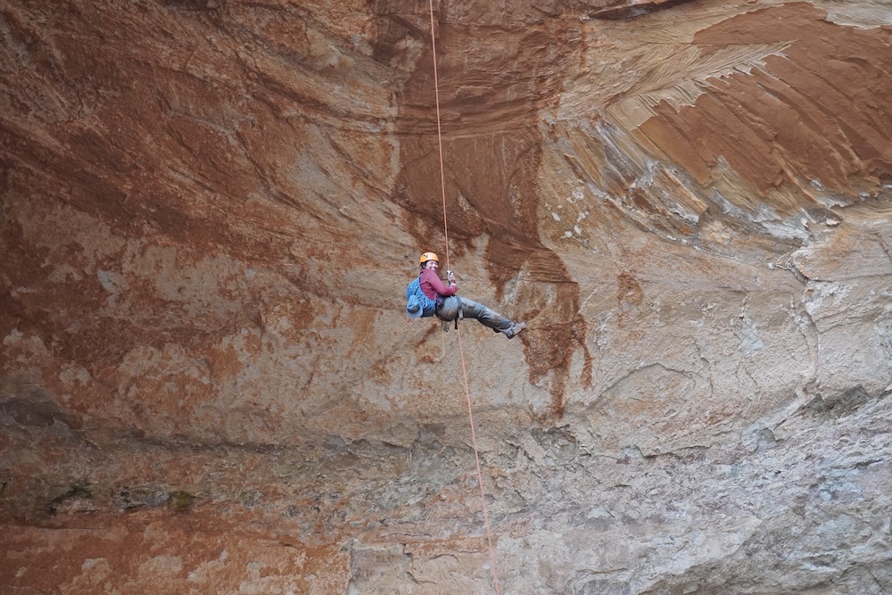 Lucy on the free hanging rappel